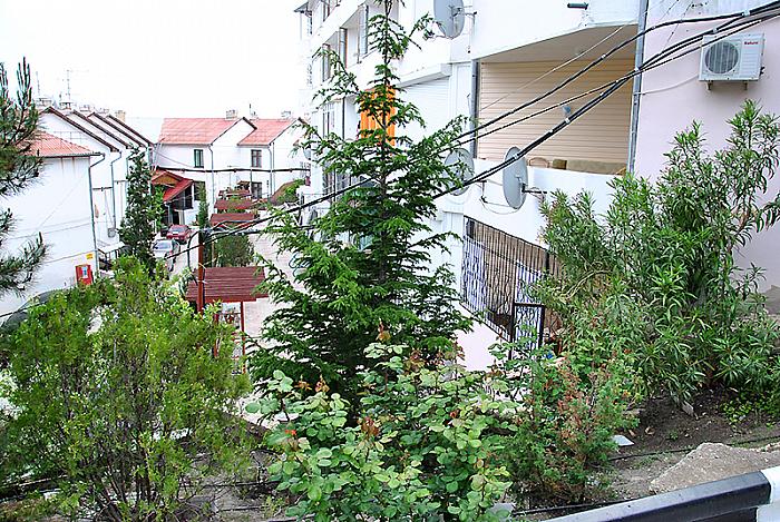 Квартира состоит из одной проходной комнаты, балкона с видом на море.