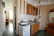 На кухнях газовые двухкомфорочные плиты, холодильник, набор посуды. Вода холодная и горячая круглосуточно.