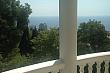 На террасе мягкий гарнитур из белой плетенной мебели с потрясающим видом на море, парк и горы.