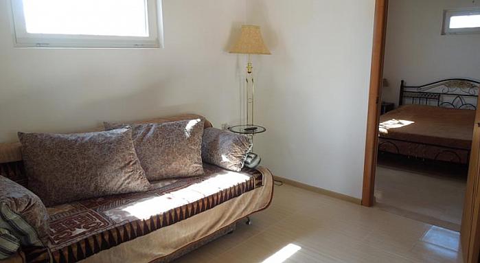 В номере: одна 2-спальная кровать с ортопедическим матрацем, раскладывающийся диван, 2 тумбочки со светильниками, холодильник, электрочайник и набор необходимой посуды (тарелки, стаканы, ложки, вилки), плазменный ТВ, своя лоджия со столом и стульями, санузел. На территории есть WI-FI.