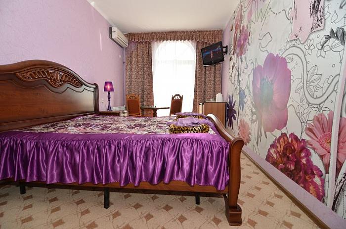 Четыре номера "люкс" (25-28 кв.м), в каждом из которых - 2 комнаты, балкон, холодильник, кондиционер, сейф, спутниковое ТВ (15 каналов), душевая кабина, туалет, умывальник, фен.
