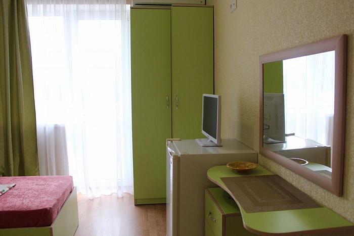 Гости отеля круглосуточно пользуются горячей и холодной водой. Номера оборудованы добротной, новой мебелью: удобными кроватями с ортопедическими матрасами, просторными шкафами для одежды, столиками для косметики с зеркалами, обеденными столами и креслами. В каждом номере установлен холодильник и кондиционер.