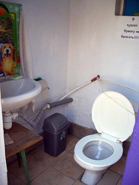 комната на троих (кровати, тумбочки, шкаф с зеркалом, холодильник, вентилятор, ТВ), удобства во дворе,
