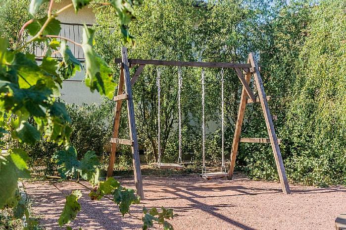 Для ребенка есть возможность отдохнуть от вас с его ровесниками на детской площадке, пока вы жарите шашлыки в беседке.