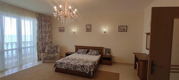 Оснащение: двухспальная кровать, раскладной диван, комод, спутниковое телевидение, кондиционер, гладильная доска, утюг, сейф.