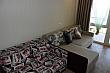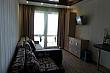Площадь 30 кв.м., студия, в номере двуспальная кровать и раскладной минидиван (1 чел.), LCD- телевизор, стол, 3 мягких табурета, кухня оборудована бытовой техникой (мини-холодильник с морозильной камерой, микроволновая печь, электрочайник, вытяжка), кондиционер, гардероб, санузел.