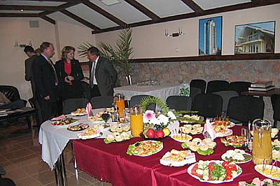 При проведении конференций или переговоров мы обеспечиваем Вам кофе-брейки для учасников, а так же организуем банкеты и фуршеты.