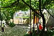 Гостиный двор расположен по склону горы, коттеджи находятся на разных уровнях, они утопают в зелени и цветах.