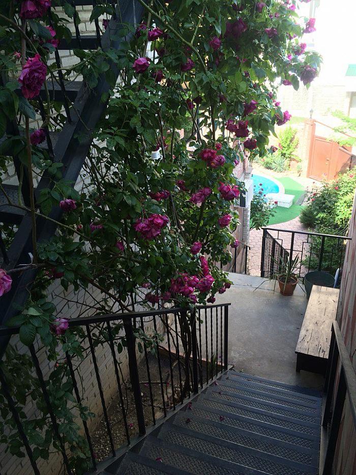 В номере имеется балкон, в обеих комнатах, который выходит во двор пансионата.
