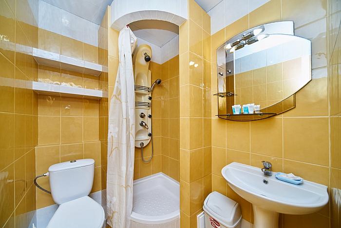 Отель располагает 28 номерами повышенного комфорта с большими окнами. В каждом номере есть: балкон с мебелью, кондиционер, теплый пол с паркетным покрытием, двуспальная кровать, гардеробный шкаф, комод, столик со стульями, холодильник с освежающими напитками, телевизор с аналоговым вещанием и бесплатный Wi-Fi. В современной ванной комнате Вы найдете туалетные принадлежности и фен. В качестве дополнительного места мы предлагаем разместиться на диване, кресле-кровати или евро-раскладушке.