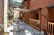 Терраса – 10 кв.м. мебель из лозы: стол, кресла, диван. Во дворе фонтан, розы.