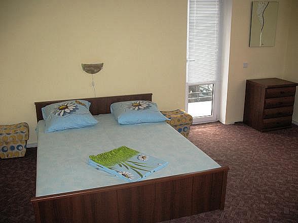 Номера ЛЮКС ДЛЯ 4-Х НА ПЕРВОМ распологаются на первом этаже и имеют отдельный вход со двора в номер, также включают в себя одну большую комнату, санузел с душевой и видом на море. Общая площадь номера 30мкв. В номере также установлен кондиционер, холодильник, телевизор, кабельное телевидение 60 каналов, WI-FI доступ к интернету. В номере имеется 2-х спальная кровать и раскладной диван нового типа, а также необходимая мебель.